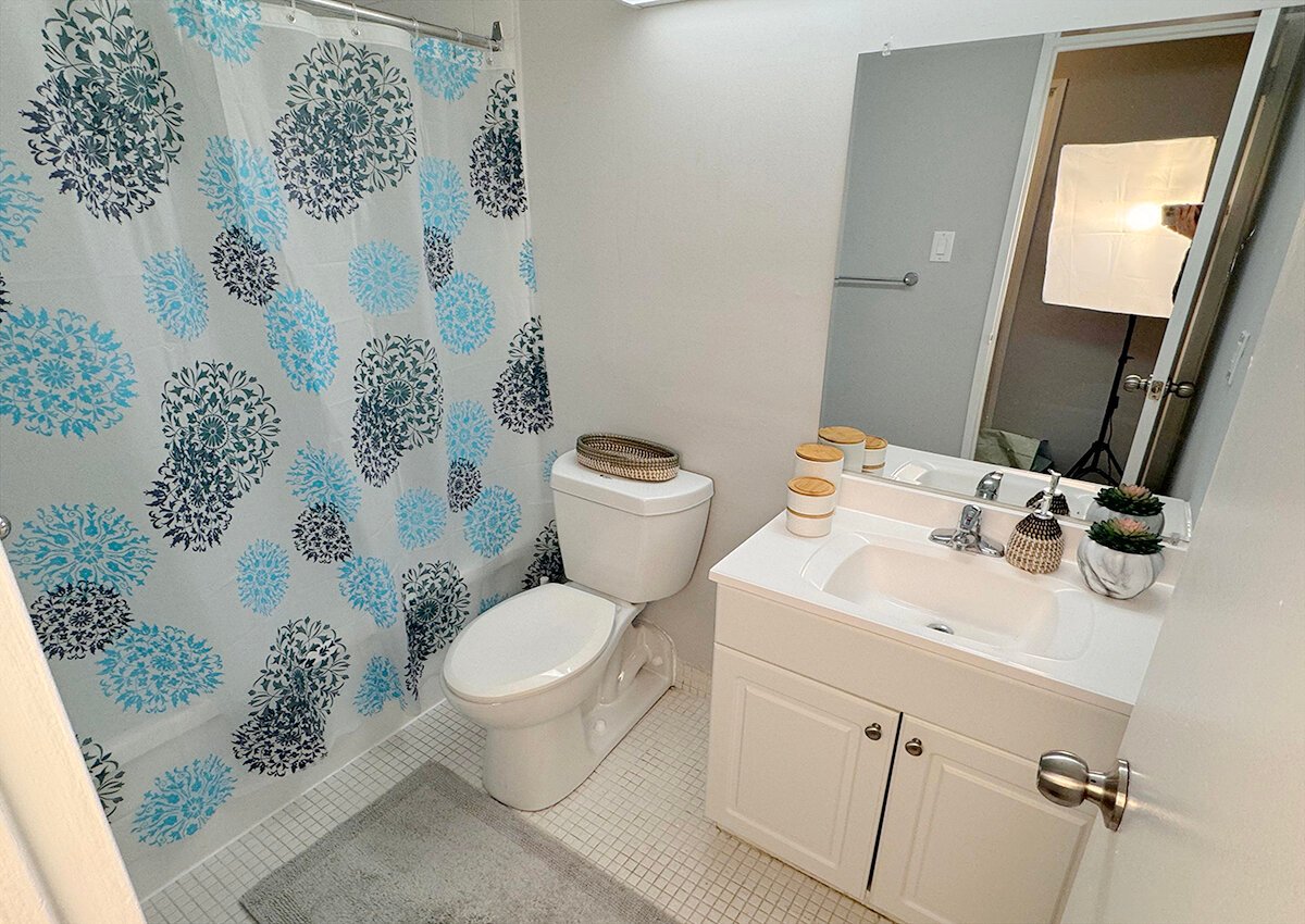 The unit is crafted for functionality and comfort, with living areas designed to maximize space and light, creating a welcoming atmosphere. Bedrooms offer private retreats for rest, while the shared washroom is equipped with essential amenities for a busy household. The interior design focuses on practicality and simplicity, ensuring efficient use of space.