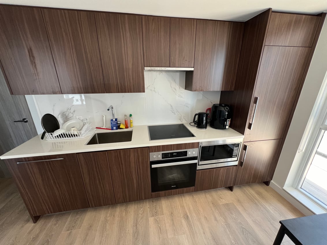 The Flex Room, situated in our apartment at the bustling intersection of Widmer Street & Adelaide Street West, combines comfort with practicality in the heart of Toronto. This efficiently furnished room includes a full-size bed, study desk, nightstand, and a modern 40-inch Smart TV, perfect for individuals looking for a functional and cozy living space. Large windows allow plenty of natural light to brighten the room, offering views of the lively urban surroundings.